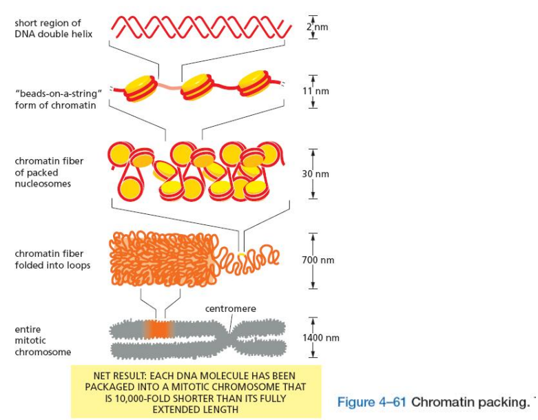 - 四级结构:染色体单体 (chromatid),压缩5倍