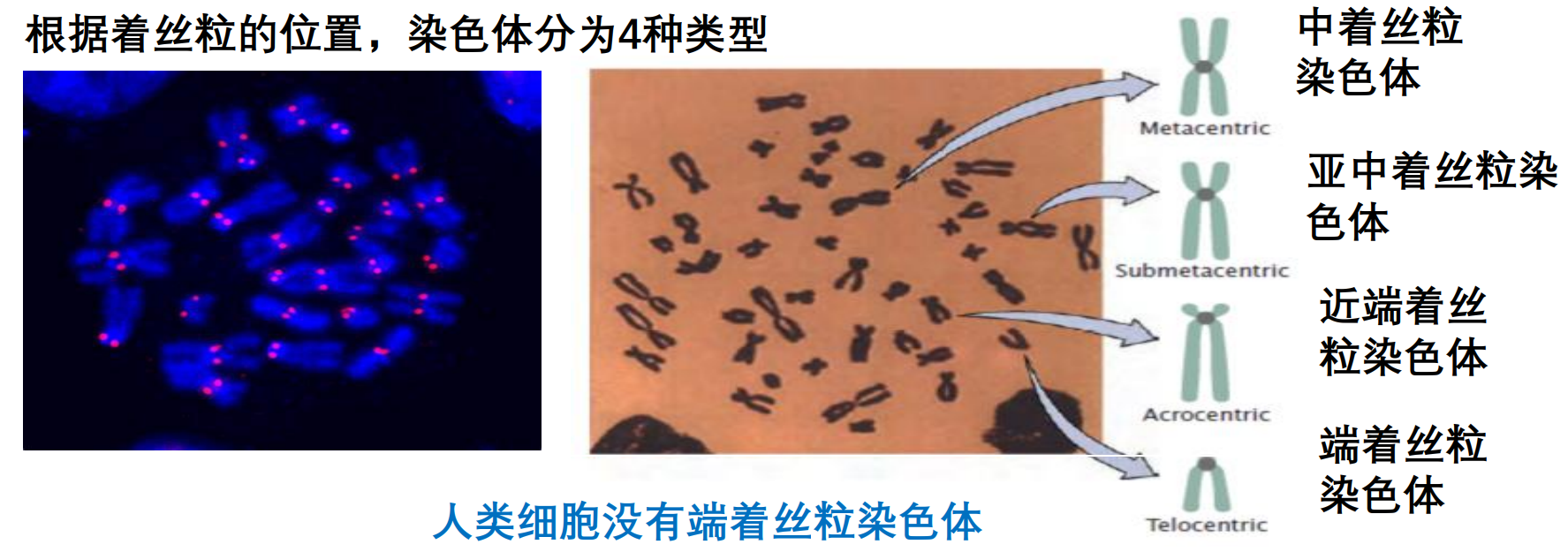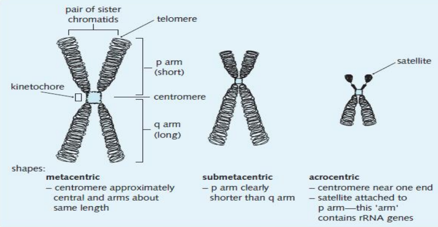 染色体上有一个叫做主缢痕——姐妹染色单体连接处存在的向内凹陷的缢痕的结构,而着丝粒就在主缢痕中姐妹染色单体相连中心部位,着丝粒两侧分别为染色体长臂和短臂。