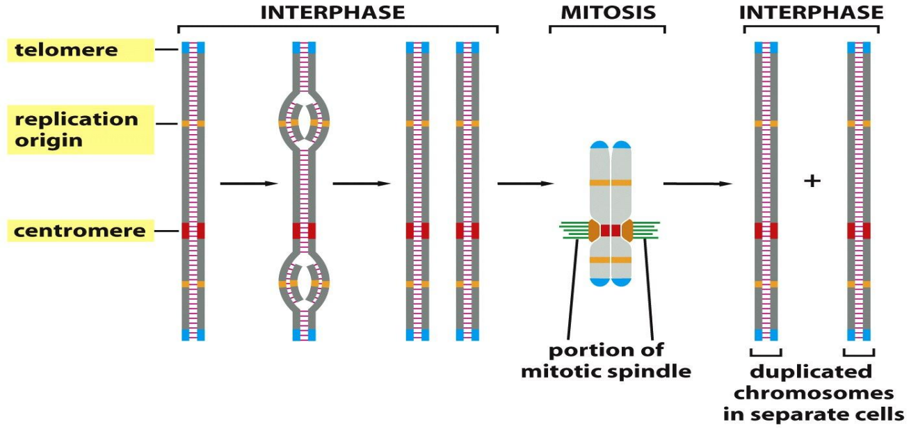端粒、着丝粒与复制起始点是染色体保持完整和稳定的三大要素。