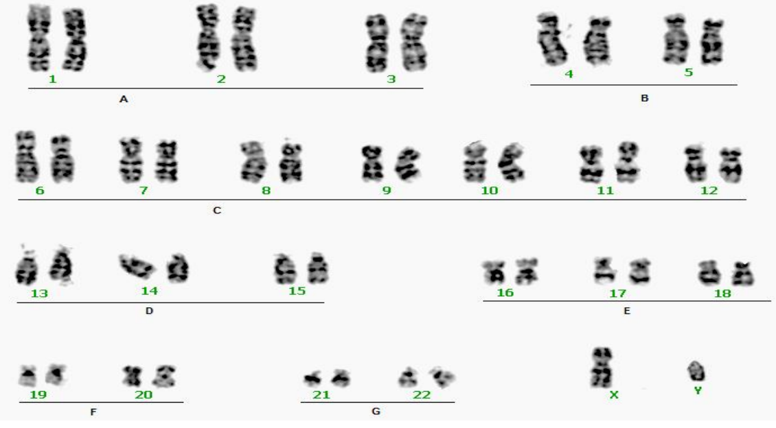 下图展示了人类染色体带型: