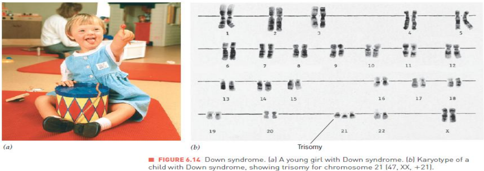 - 染色体异常导致染色体病,表现为染色体数目的异常或染色体结构的异常。例如,21三体综合症。