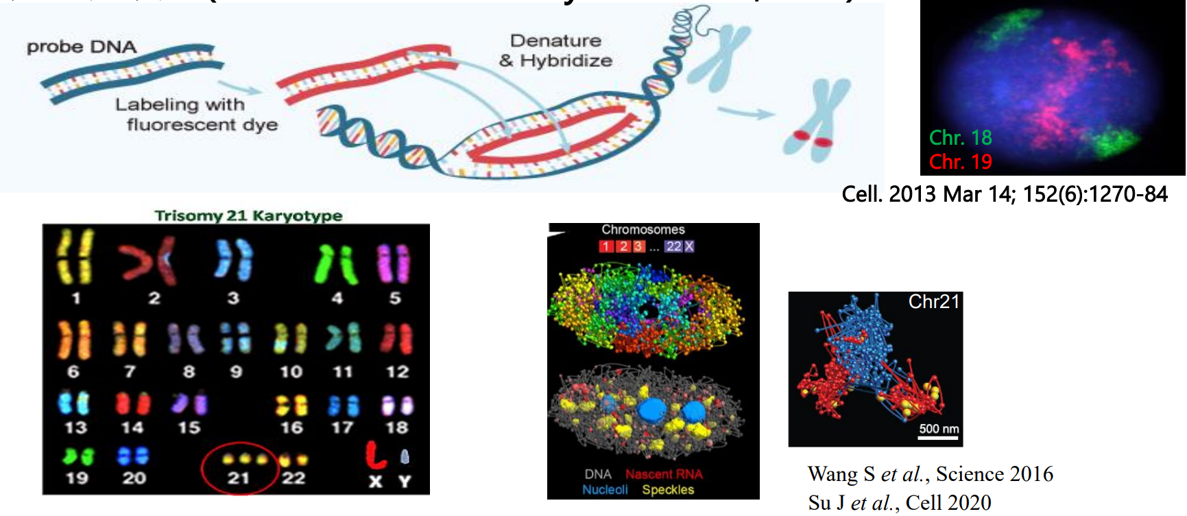 荧光原位杂交 (Fluorescence in situ hybridization, FISH) 常用于核型分析当中。