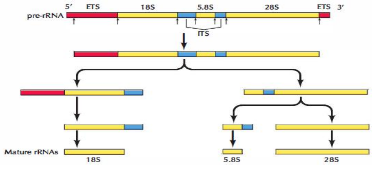 rRNA加工过程示意如下: