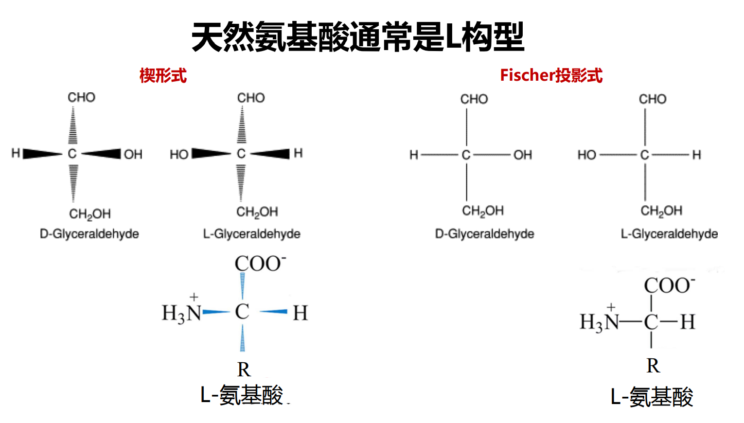 我们对氨基酸手性的判断基于甘油醛的Fischer投影式: