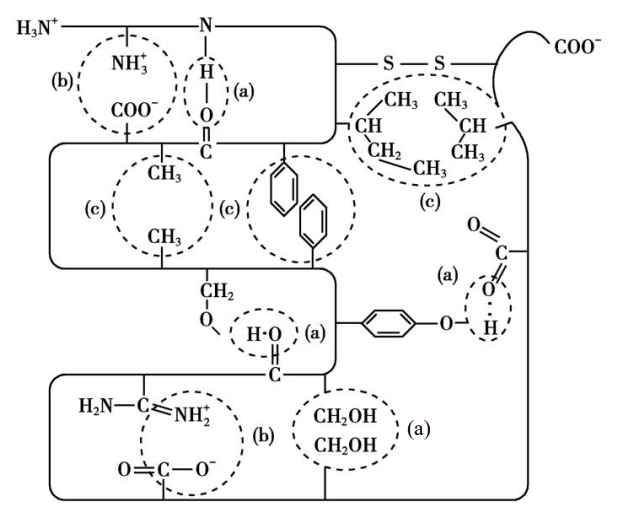 而在这条肽链三维结构的形成与维持中,R基之间的相互作用功不可没。
