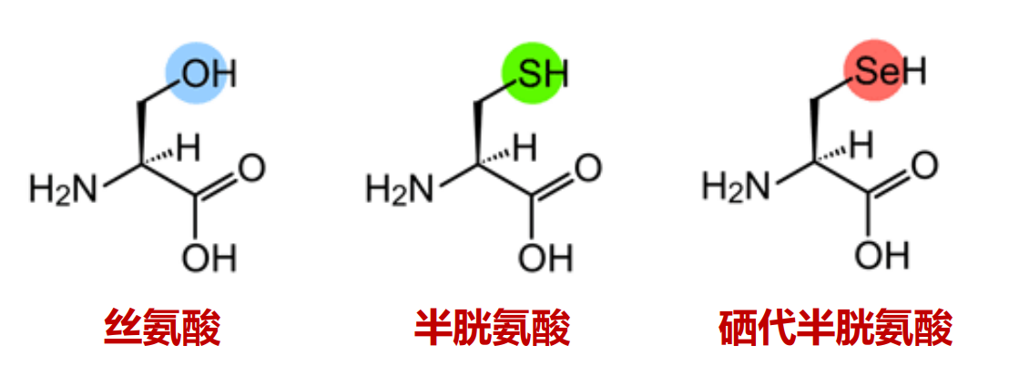 除了以上20种基本的氨基酸以外,近年来的研究还发现硒代半胱氨酸在某些情况下也可以被用于合成蛋白质,结构上来看,硒代半胱氨酸以硒原子代替了半胱氨酸上的硫原子。其一般存在于过氧化物酶和电子传递链中的还原酶。