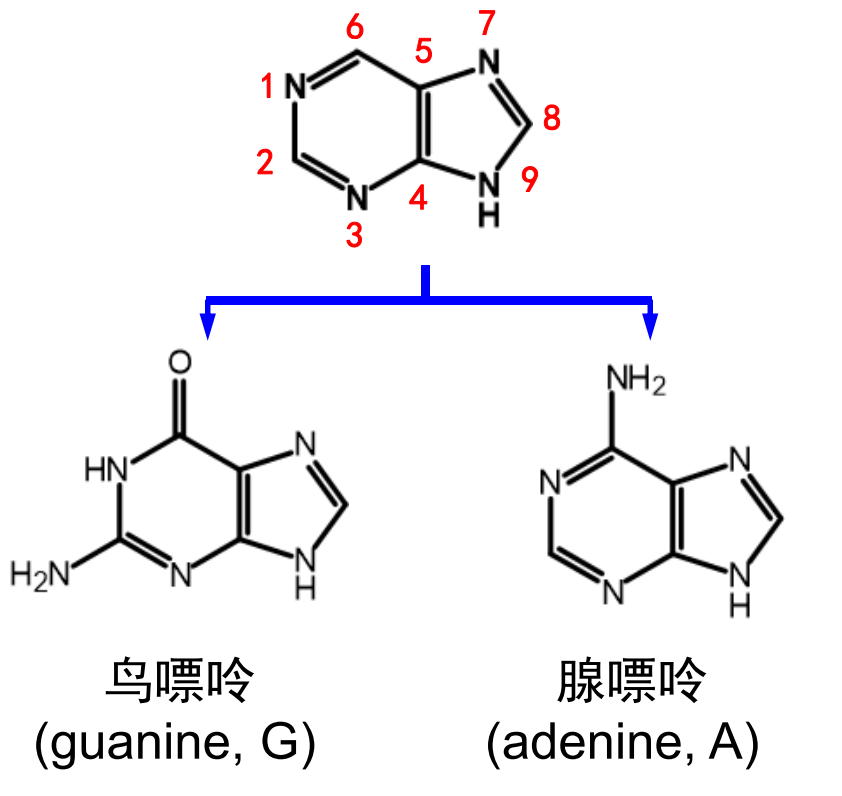 嘌呤碱基有两种:鸟嘌呤和腺嘌呤。