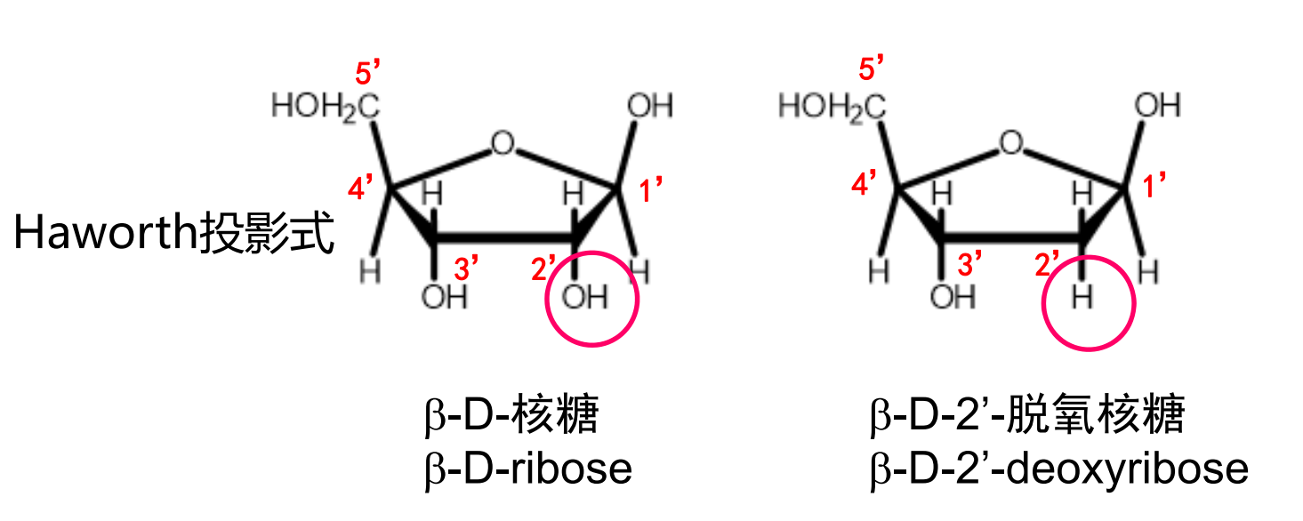 其中脱氧核糖在2号碳上缺少一个羟基。