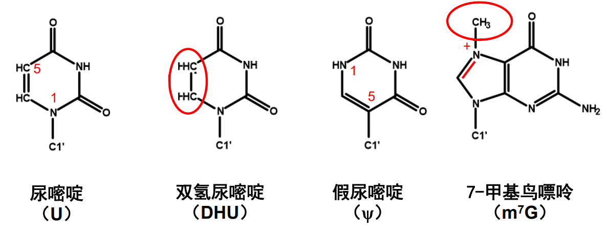 tRNA上含有很多稀有碱基(哇,金色传说!),这些碱基都是在转录后修饰得到的。