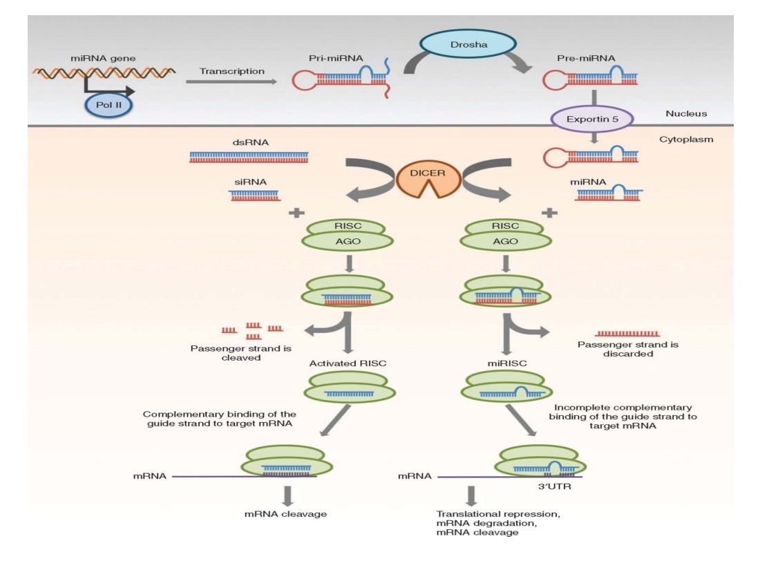 - 与编码基因的转录本形成互补双链,产生内源性siRNA;