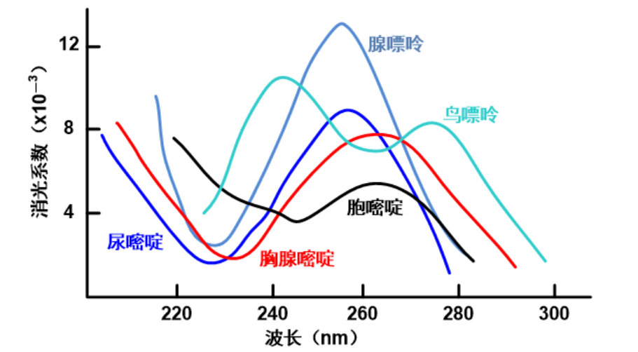 同蛋白质类似,核酸也有强烈的紫外吸收特征(芳环:你好)。