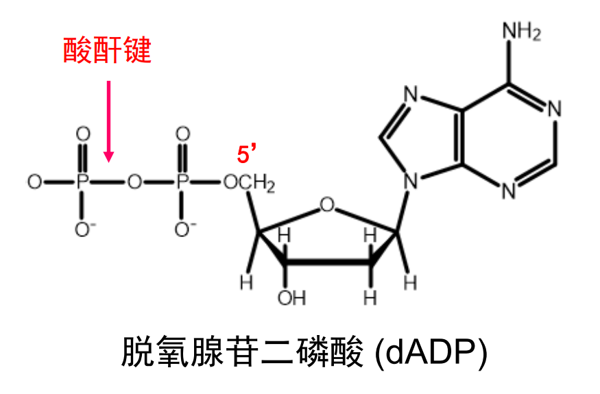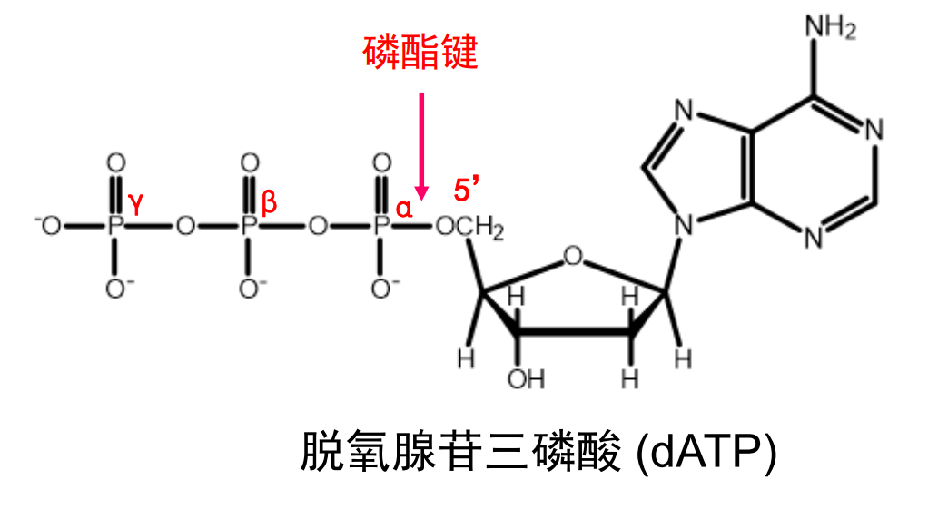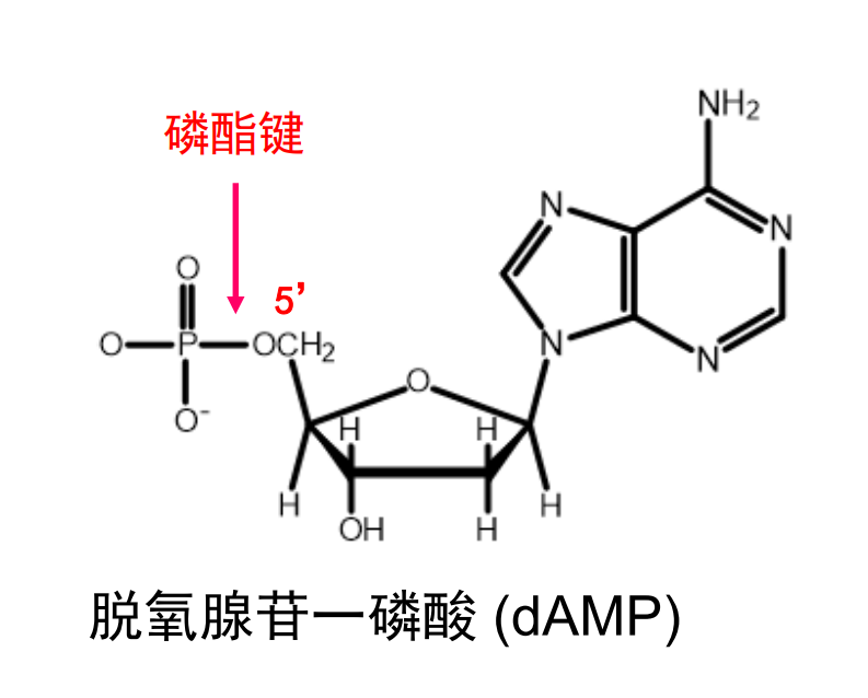 仅有一个磷酸基团的核苷酸被称为xxx苷一磷酸(比如脱氧腺苷一磷酸 dAMP),磷酸之间还可以叠叠乐,通过酸酐键相连,形成dNDP,dNTP等等。