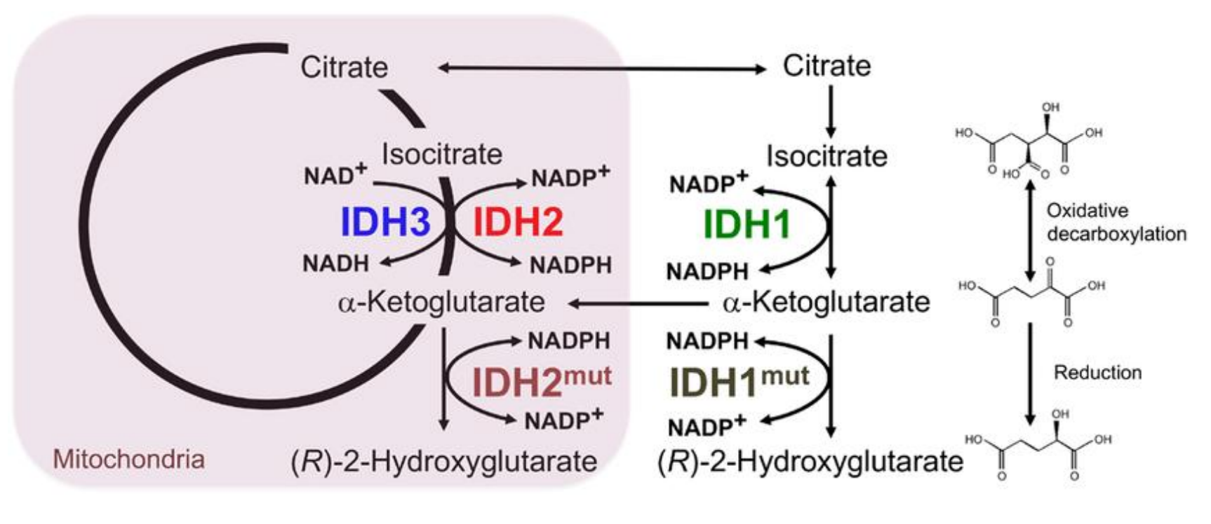 异柠檬酸脱氢酶突变体会催化生成致癌代谢物。