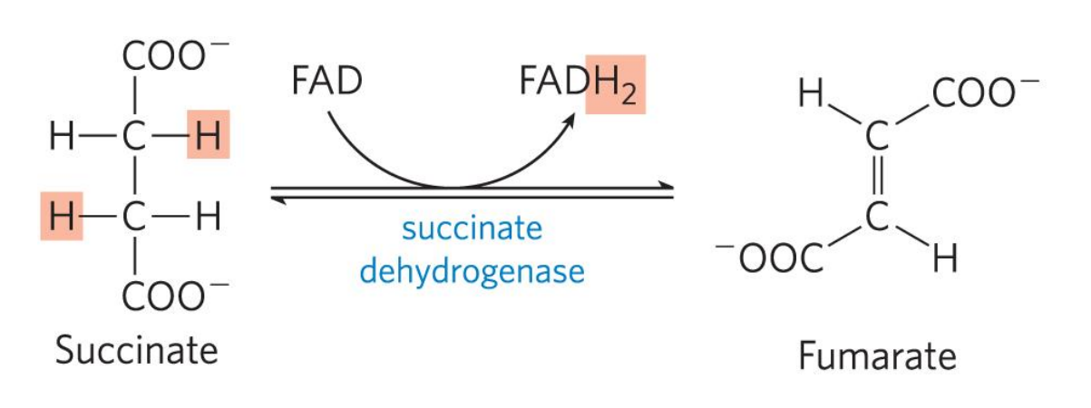 其电子受体为黄素腺嘌呤二核苷酸 (FAD),通过共价键与琥珀酸脱氢酶结合。