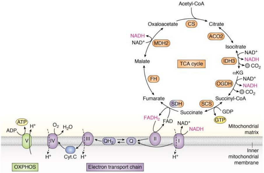 - 从碳能源中收获大量高能电子:3 NADH+1 FADH2。