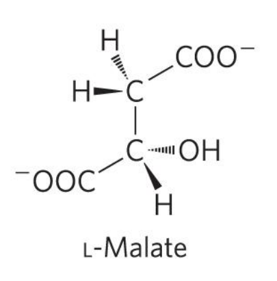 延胡索酸 (反-丁烯二酸)在延胡索酸酶的催化下,以高度的立体专一性,得到左旋的L-苹果酸。该反应是可逆的。