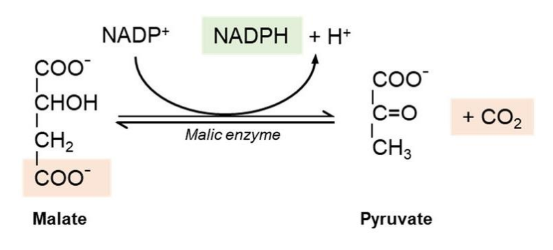 - 苹果酸与丙酮酸之间通过苹果酸酶催化转化