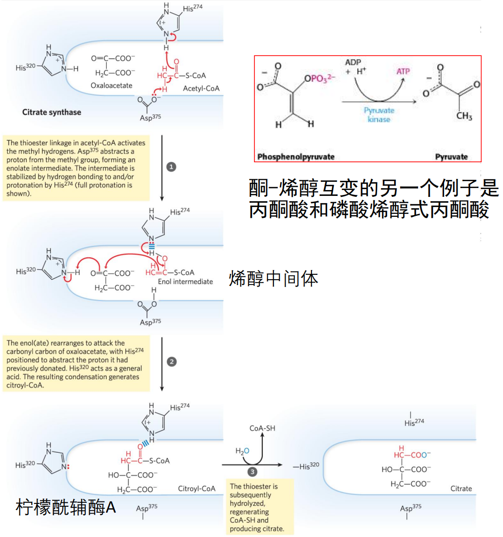 柠檬酸合酶通过两个组氨酸与一个天冬氨酸实现催化作用: