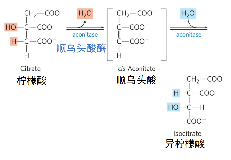 - 一/两步异构:柠檬酸-顺乌头酸-异柠檬酸
